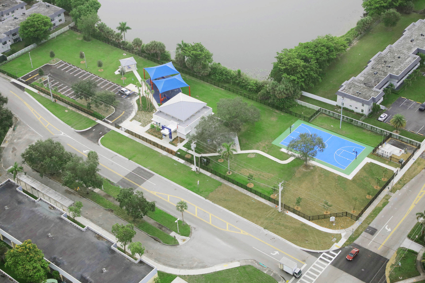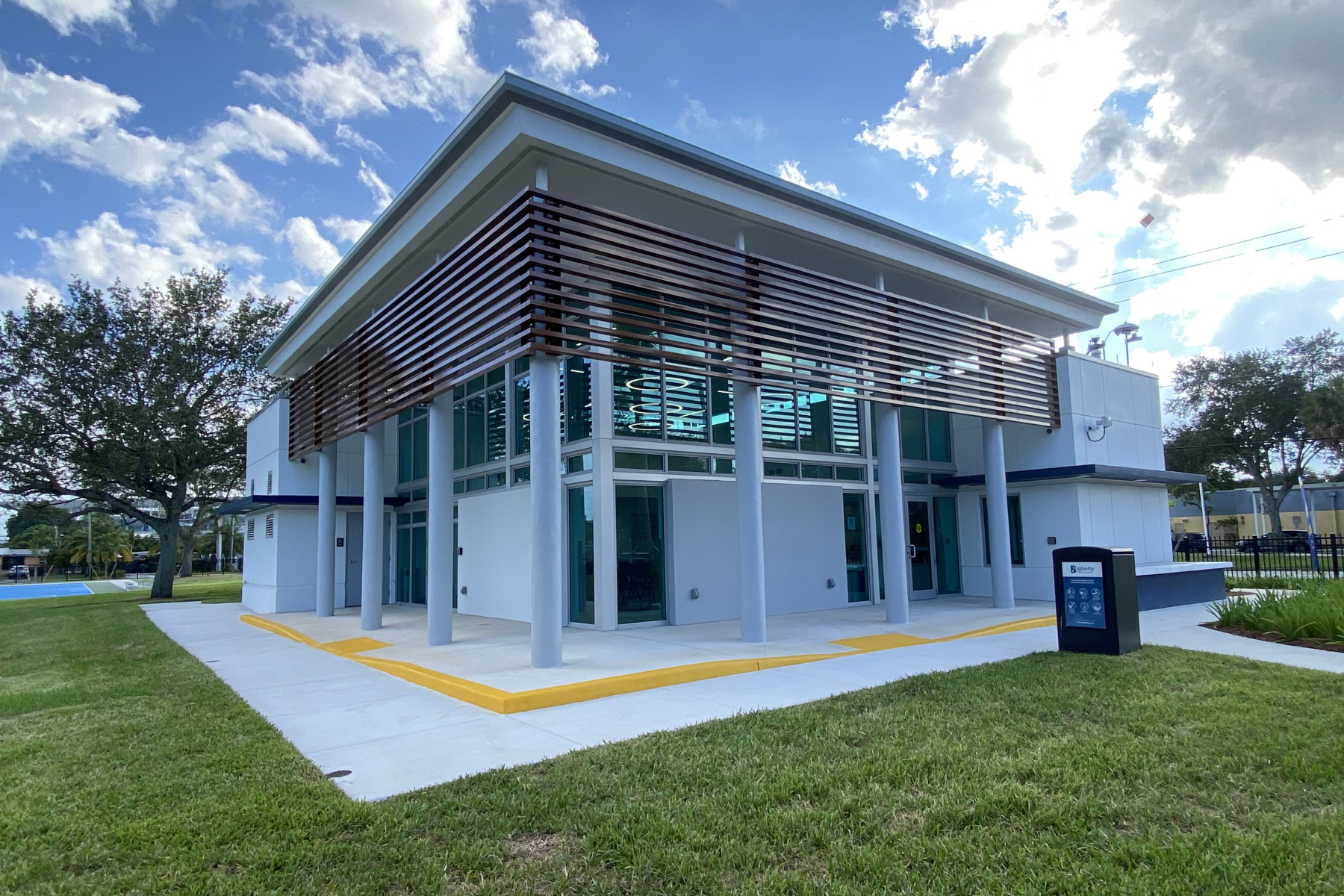 New 2,300 square foot Community Center Building featuring a curtain wall system allowing for natural lighting, unique sun shading system, exterior concrete canopy, and exterior wall panels at the front entry. These features will provide a sleek modern, welcoming building for the Miami Gardens community.