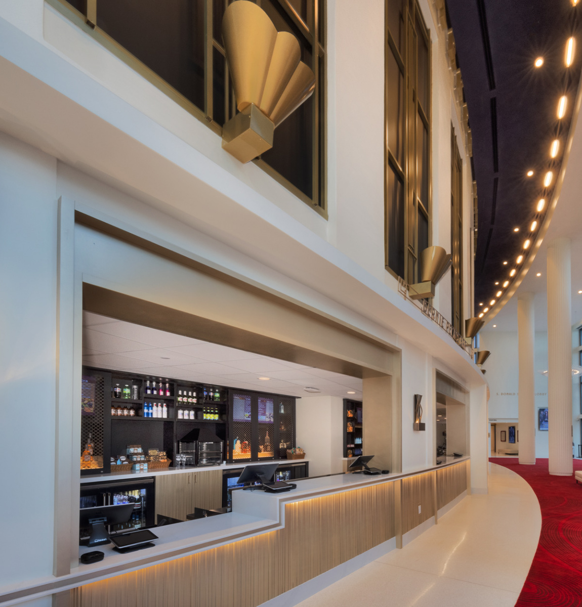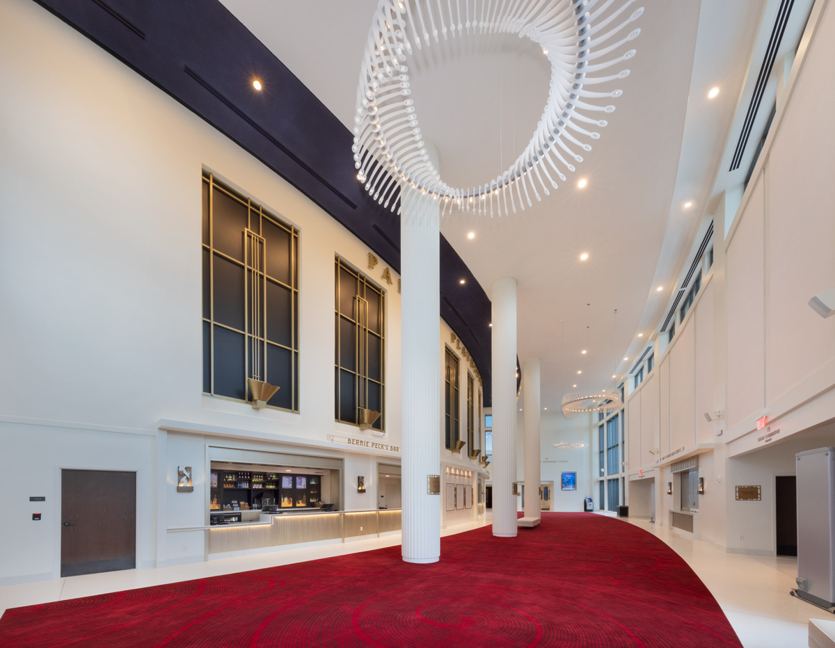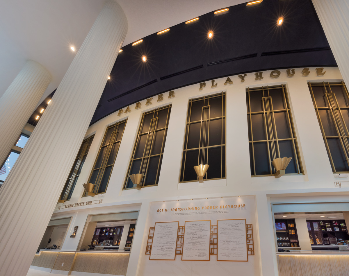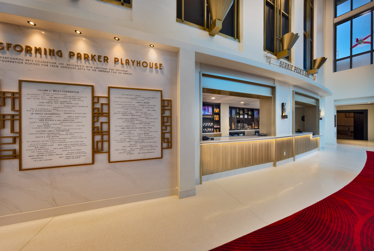 In operation since 1967, Parker Playhouse, renamed The Parker, underwent a complete renovation that included a new major 8,000 SF lobby expansion, renovations of the existing facilities, new theatrical equipment, lighting, and sound systems, new theater seating, new private donor and VIP lounges, a new and expanded signature bar area with several bars, an upgraded electrical system, more advanced acoustics, enhancements to the building’s air conditioning and six new public toilet facilities. The existing building’s exterior structure was repaired and repainted.