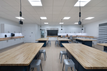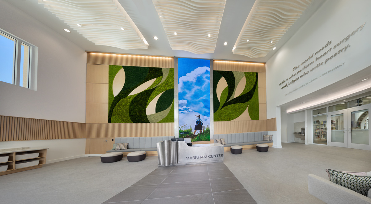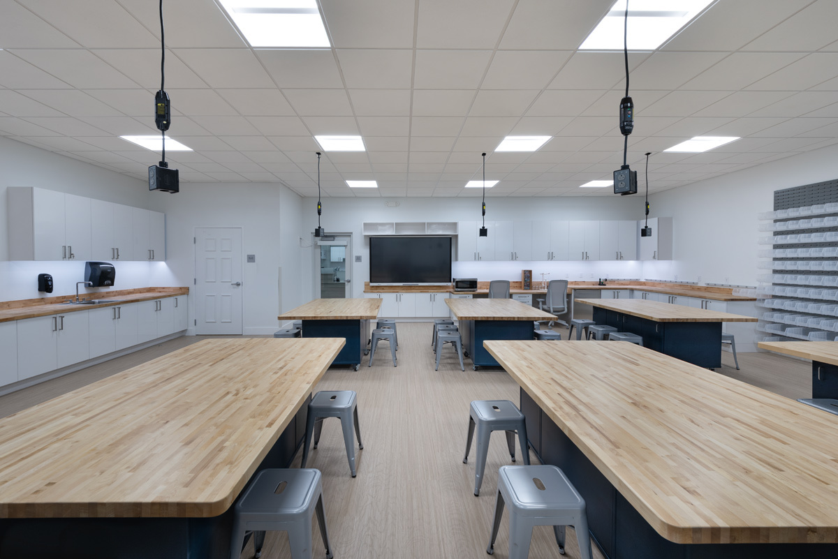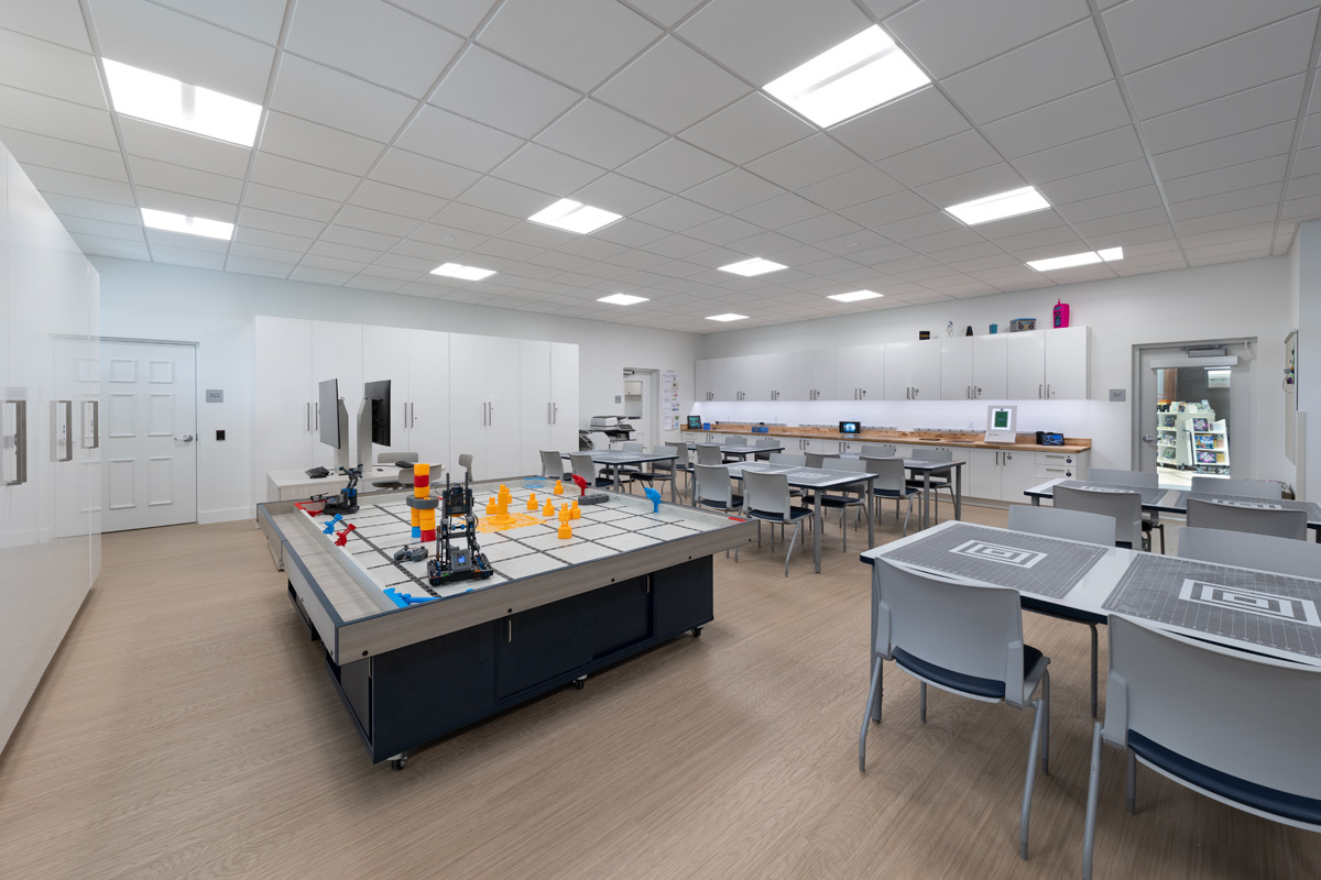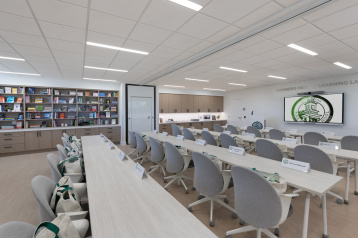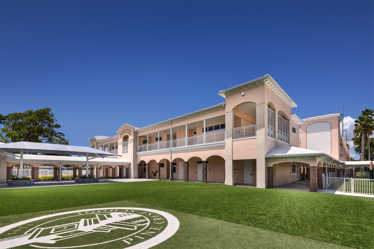 The Center for Progressive Teaching and Learning is a new two-story 19,322 SF building that will replace the existing Stacy Hall building and become the new focal point at the main entrance to the Pine Crest School Fort Lauderdale campus. The first floor will house student classrooms, including innovative Lower School I-Lab and Robotics, and a new interactive Library with touchscreens and play areas with a dedicated Augmented Reality and Virtual Reality room. The first floor will also have a newly dedicated Spirit Store, Admissions office and Testing and Security Office. The Second Floor will have a large Science Classroom with a dedicated prep room, a Security Suite with Training room, Human Resources office suite and a Professional Development suite including two meeting rooms.