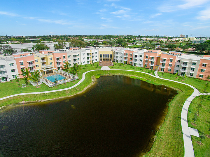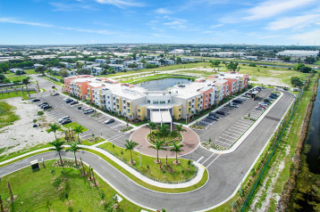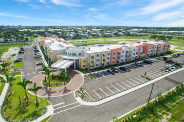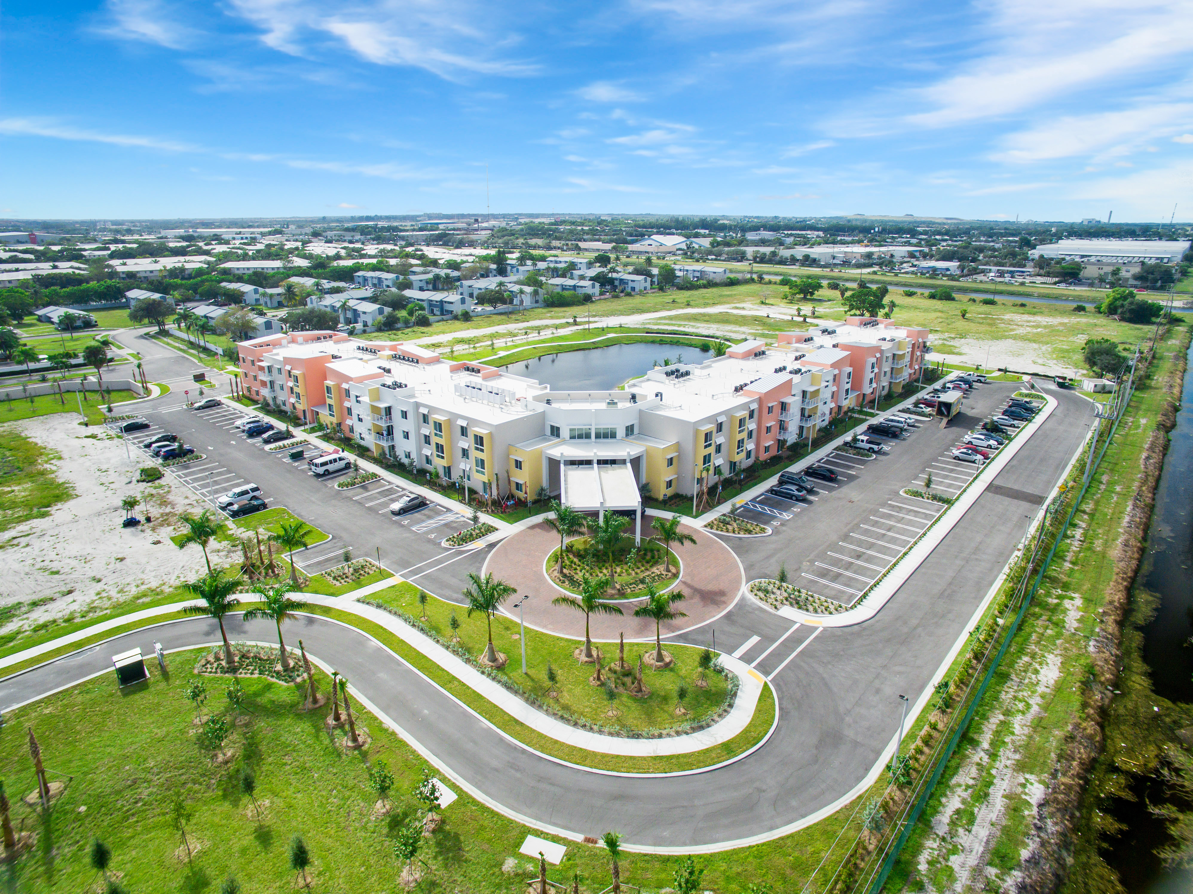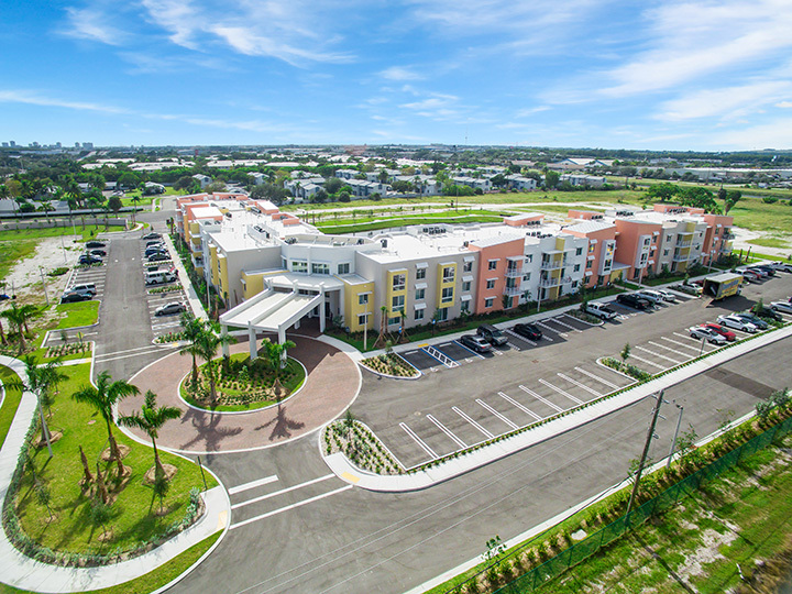 Heron Estates Senior Apartments was developed by a public private partnership between the Riviera Beach Housing Authority and the Housing Trust Group. The development, located on a 6.5-acre site at 17th Court and North Congress Avenue in Riviera Beach, Florida, consisted of new construction of a three-story building that included 101 affordable housing units for seniors and a community room, a swimming pool, parking lots and other site related improvements.